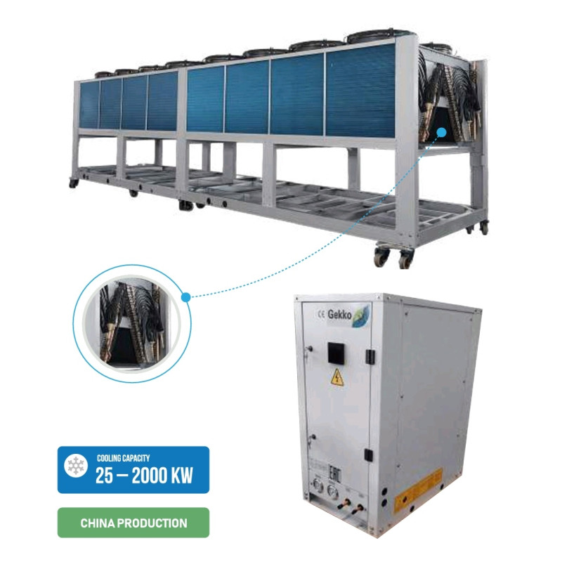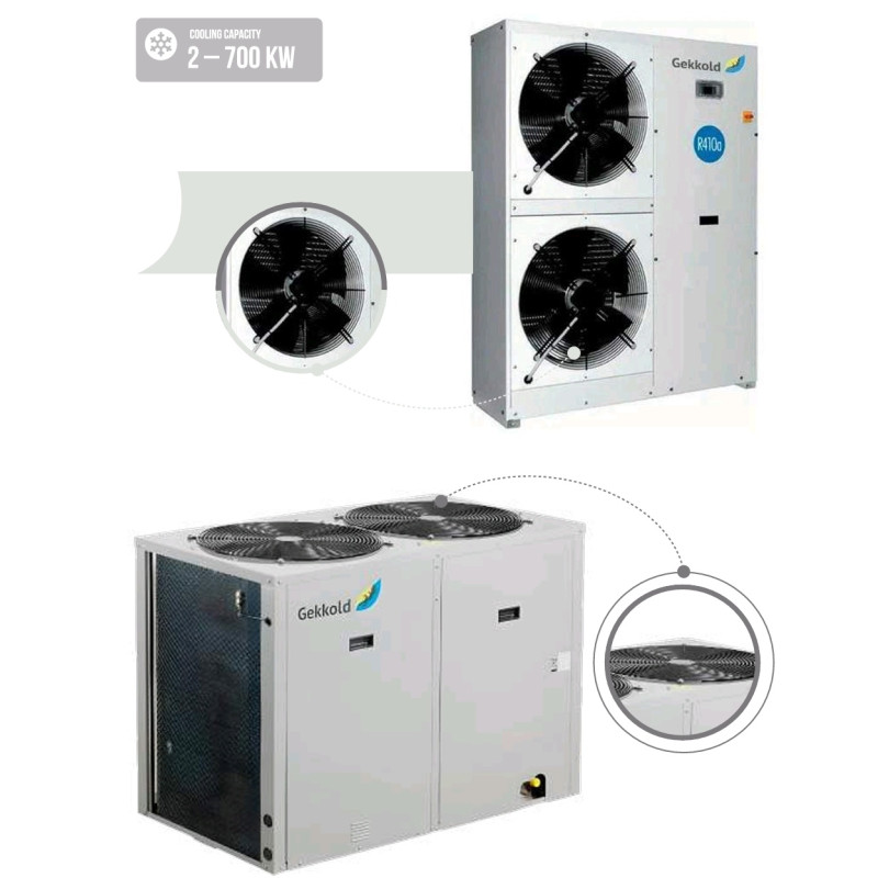 The Gekko AIR R series are industrial air-cooled liquid chillers. Designed for outdoor installation.