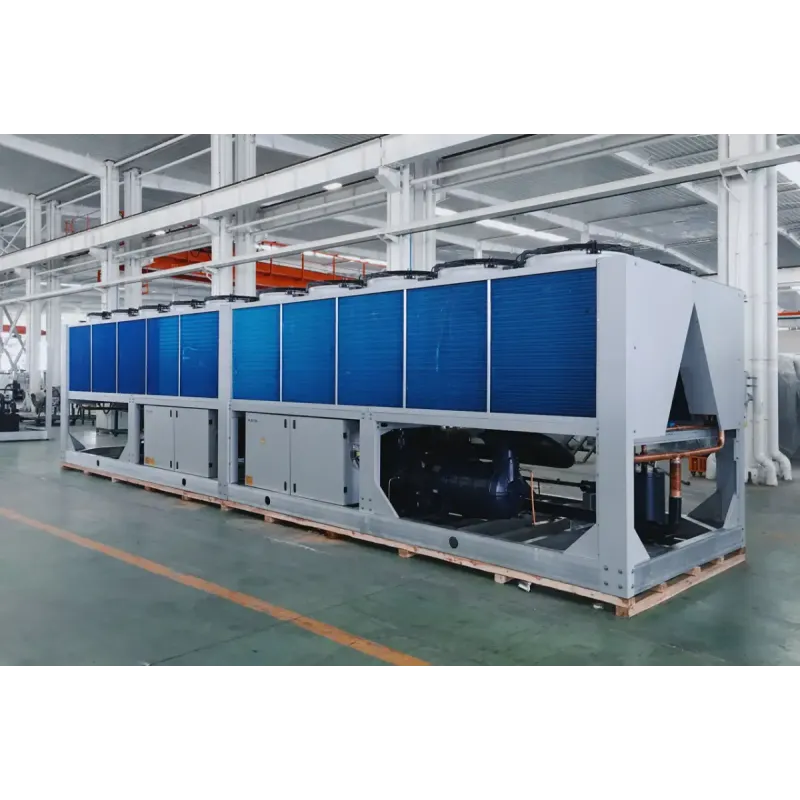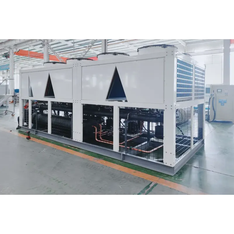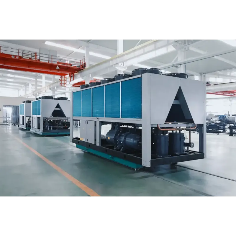 Chillers has cooling capacity from 250 kw to 1100 kw. All model of the chillers are equipped shell and tube evaporator, screw compressors and condenser which made by copper pipes and aluminum fins.. All models of the chiller are made by factory, with certificate ISO 9001. Chillers can work with ambient temperature from -25⁰C to +35⁰C. All chillers are tested by factory at special testing zone before shipment.